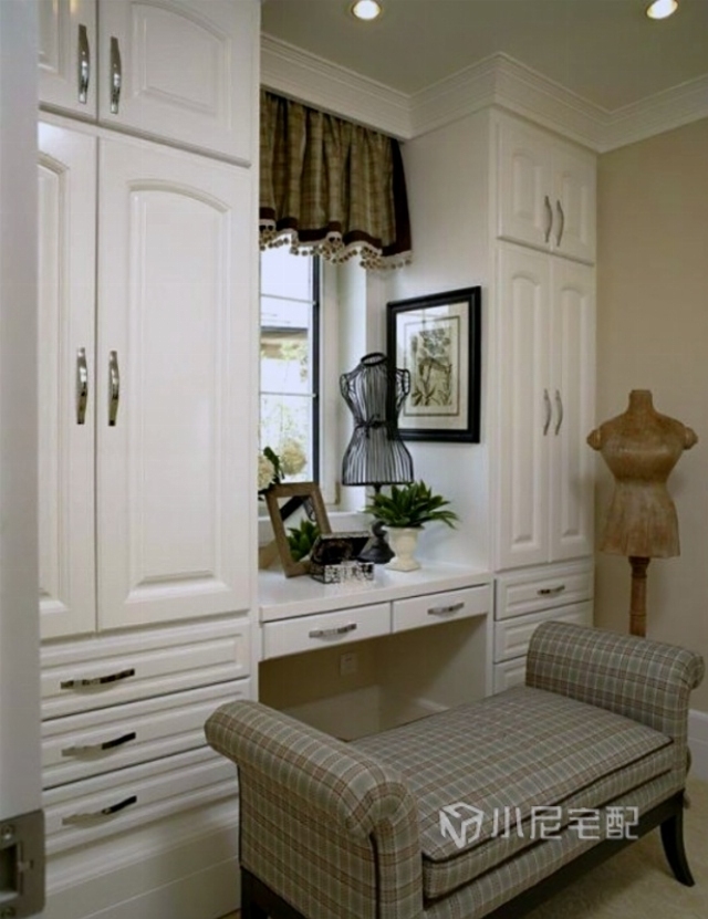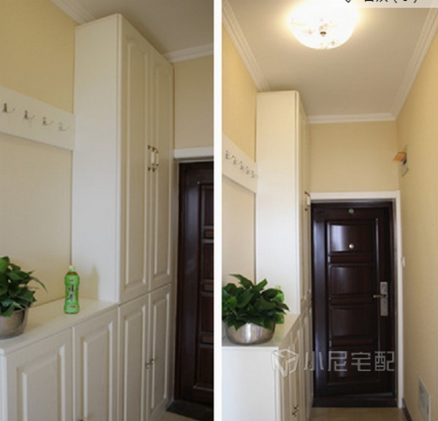 玄關(guān)處整體衣柜的收納功能遠(yuǎn)遠(yuǎn)超過衣柜的使用頻率,而且充分利用了進(jìn)門處墻面的狹小空間,最大限度滿足了收納衣物的功能,又減輕了臥室的壓力。白色的櫥柜不僅美觀整潔更顯空間感