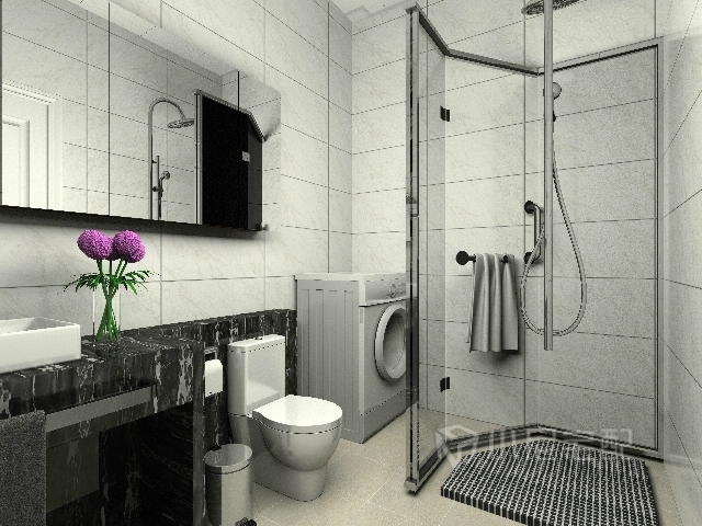 黑白的搭配,以及金屬的質(zhì)感,使得衛(wèi)生間顯得潔凈,時(shí)尚,大氣