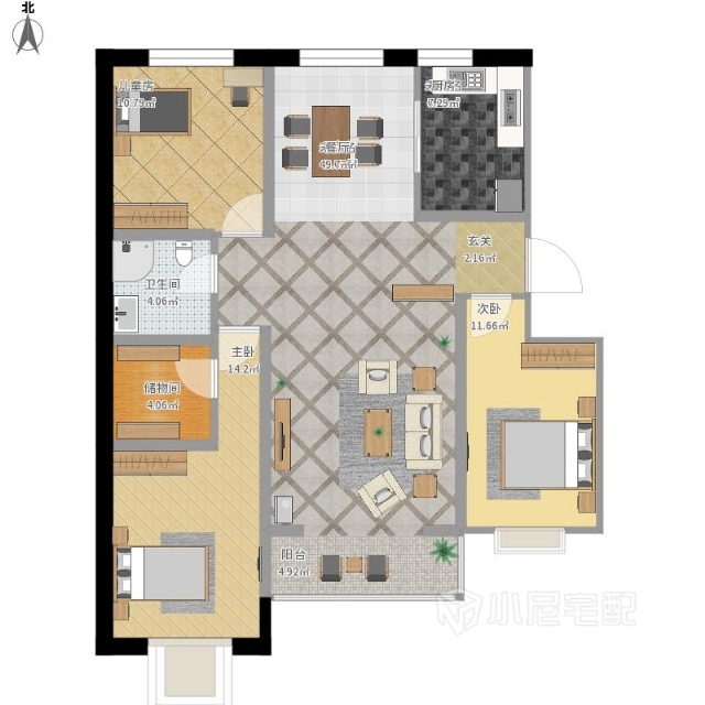 這是一間建筑面積117平的三室兩廳, 如果你不想讓家過于繁雜與奢華,但是又不愿意缺失情調和精致,那就選擇現代簡約風格吧。家裝家具一體價:14萬。