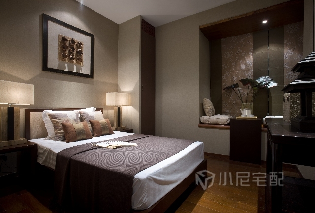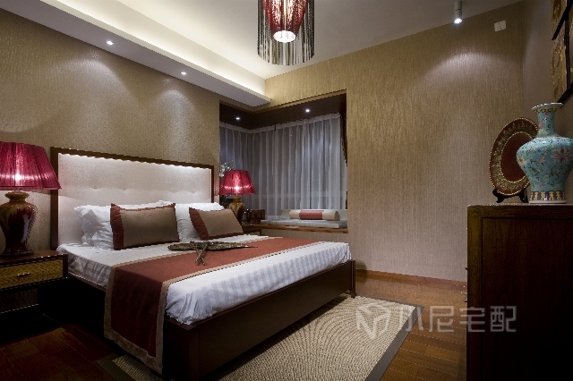設計師充分運用了對比與融合的構成手法,將東南亞的色彩感覺和中式古典家具飾物結合起來,使得整個室內空間充滿了混搭的特殊質感和自然溫暖的情調。在空間的每個角落都融合了中式、東南亞情調及裝飾藝術的設計語言,既保存著現代古典的風雅氣韻和東南亞的浪漫風格,又在古典及優雅的空間中顯得格外有親和力。家裝家具一體價:22萬。
