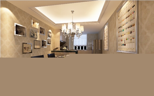 運用照片墻、水晶燈飾、石材的裝備,框塑出餐敘區域低沉而奢華的空間意象。
