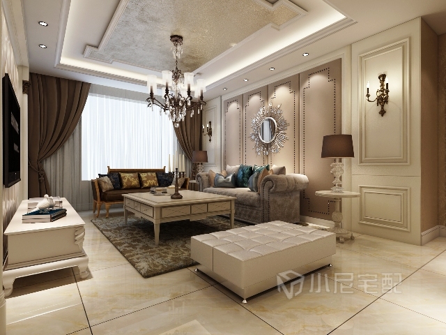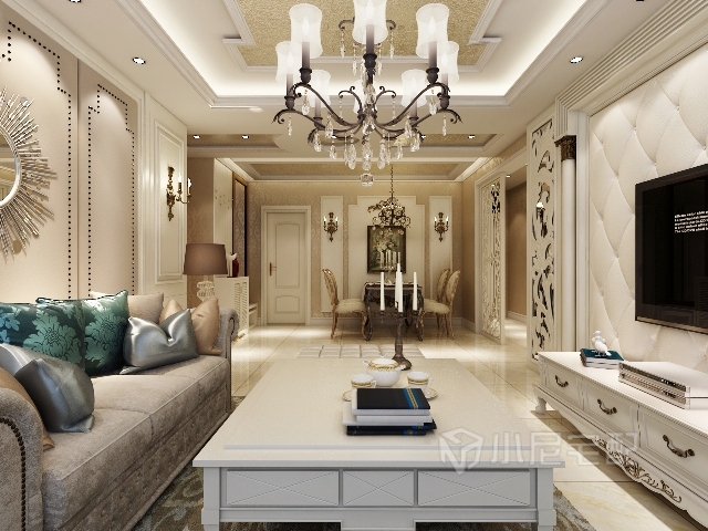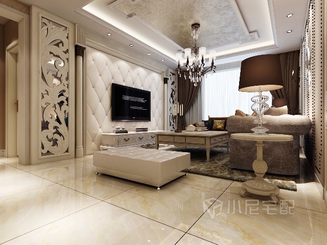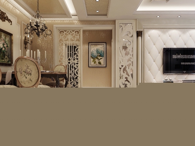電視背景墻采用軟包,雕花的裝飾,顯示室主人對生活的追求