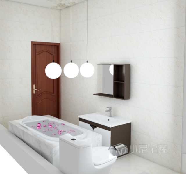 小小空間,洗漱盆上搭上小吊柜,讓你使用更方便,玫瑰花香浴,心情更舒暢。