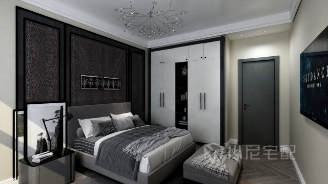 頂面采用規則的石膏板吊燈和筒燈,床頭背景都運用了壁紙等材料。從而營造一個現代化的簡單,舒適主臥空間。客臥的設計,主要以乳膠漆,壁紙,石膏線條為只要裝飾材料。