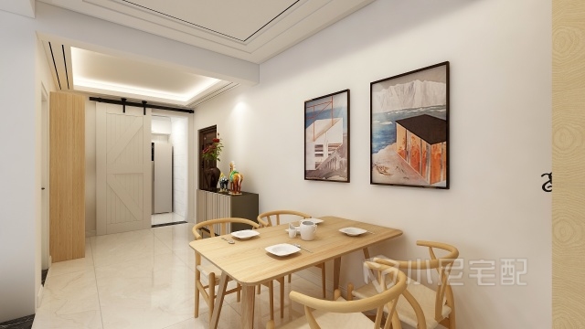 餐廳實(shí)木色餐桌,配合柔和的陽光,空間顯得更加柔和