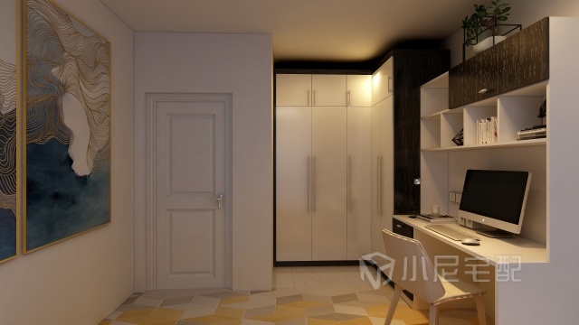 次臥衣柜貼合書桌,更加好的利用空間,旁邊榻榻米