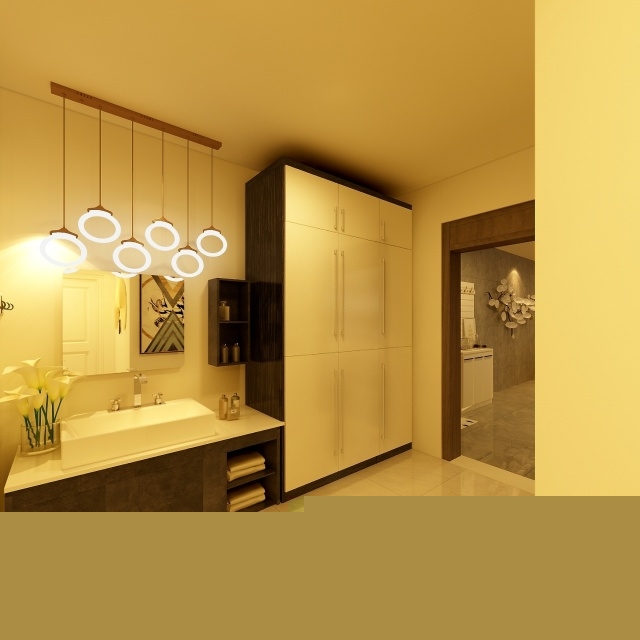 走廊設置面盆,搭配衣柜,方便更多衣物儲存,方便拿取,