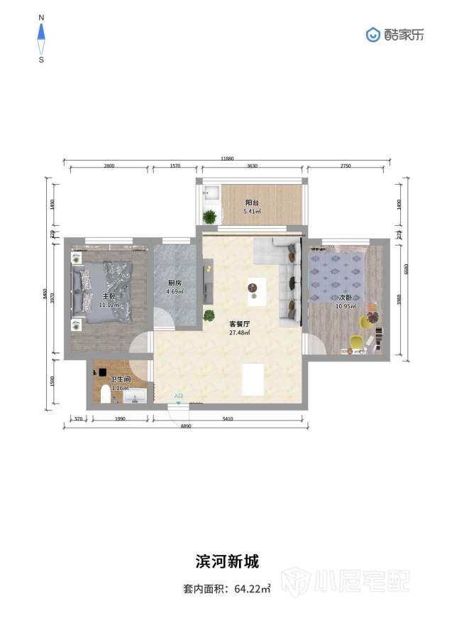 64.22㎡#兩室一廳一衛(wèi)#現(xiàn)代